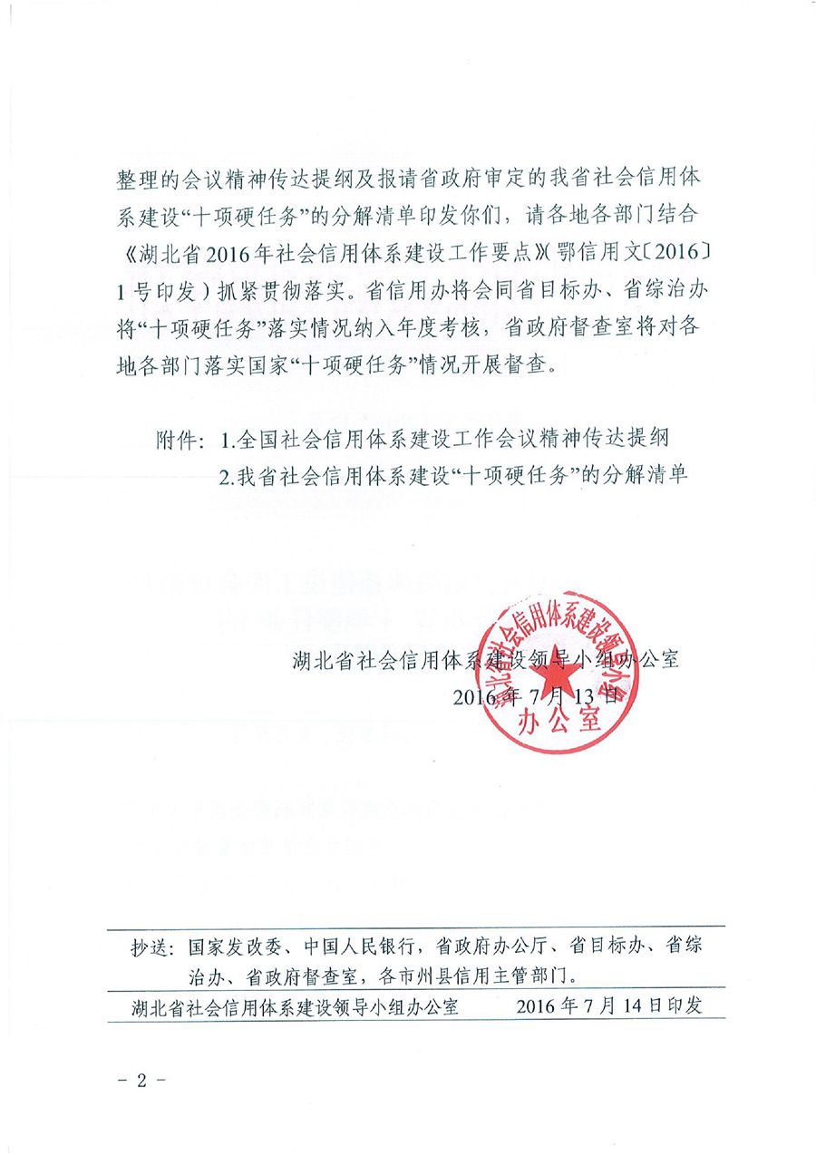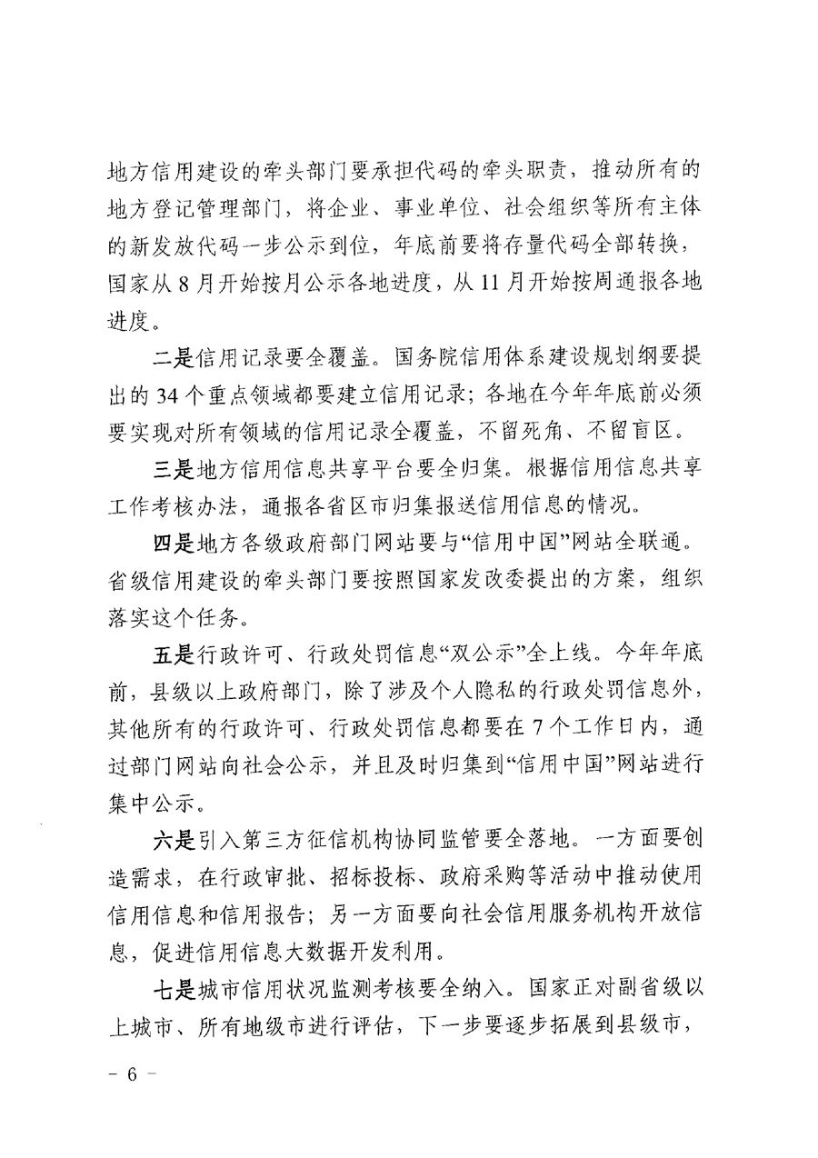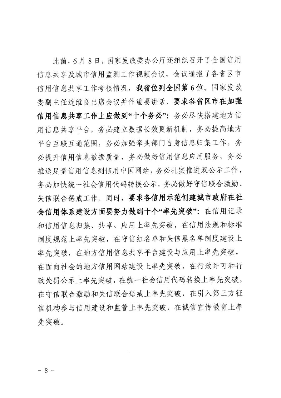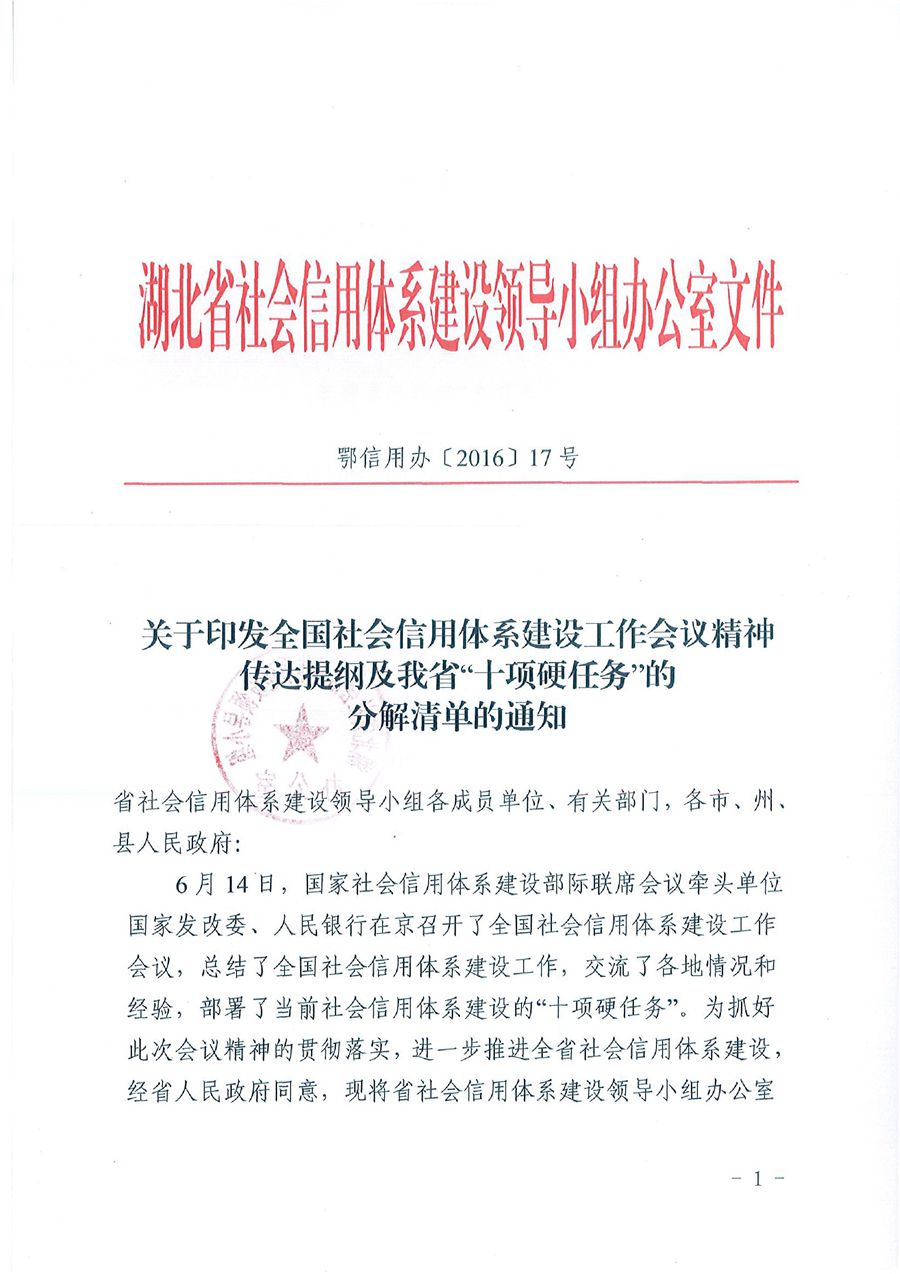 信用办17号关于印发全国社会信用体系建设工作会议精神传达提纲及我省十项硬任务分解落实清单的通知
