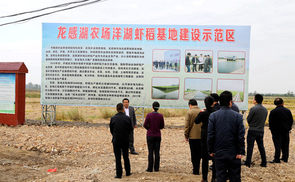 十月的龙感湖,扑面而来的是红红火火的机械收割场面,隆隆声响,向人们展示着的丰收的喜悦,在市政府秘书长闻武斌及区委领导黄智敏、汪国兵等陪同下,邱丽新一行走进洋湖虾稻基地,看稻田机收,看小龙虾越冬管理,看迎接小天鹅迁徙栖息的准备举措,她还来到临时晒场,看今年虾稻米的收成,邱丽新指出,龙感湖积极探索,建设虾稻基地,打造“水乡湿地、候鸟天堂”,积累了十分丰富的经验,为全市深化供给侧改革,推动农业转型升级提供了可推广、可复制的经验。她要求,要突出特色资源和生态环境保护,规模化养殖、资本化运作,做好做优龙感湖小龙虾品牌,结合小龙虾产业和冬季天鹅景观,提升生态观光农业发展质效。