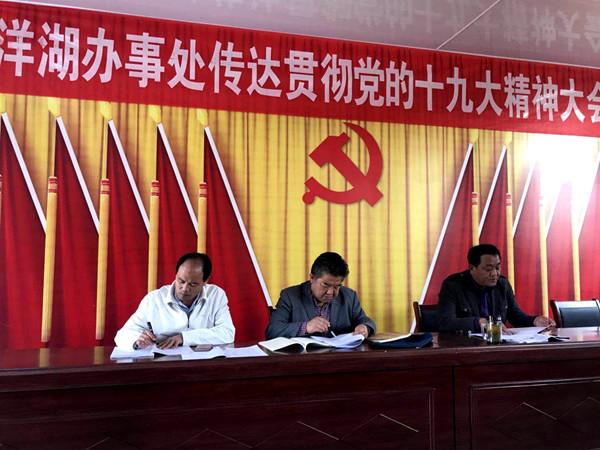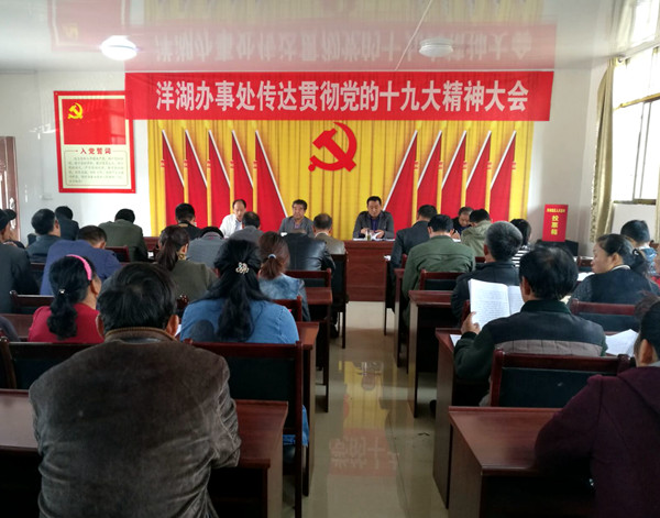 11月2日,洋湖办事处召开由全体机关党员干部、各生产队支部书记、副队长、妇女主任、党员代表参加的大会,传达贯彻党的十九大精神。